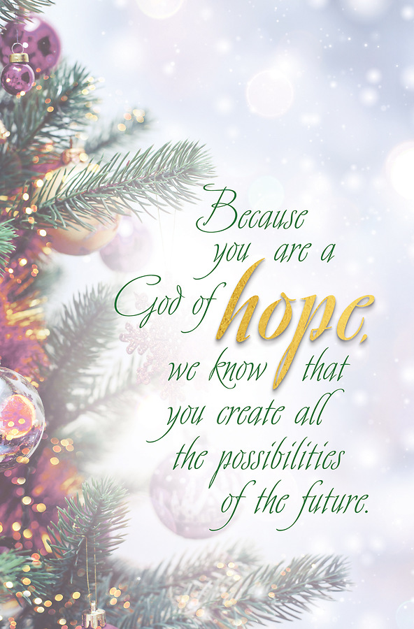 Bulletin reads: Because you are a God of hope, we know that you create all the possibilitiers for the future. Bulletin is 8.5" x 11" unfolded and 5.5" x 8.5" folded. Sold in packs of 50. Also available in a large size bulletin.
