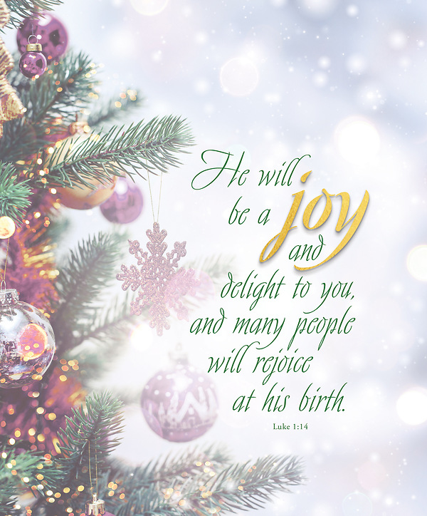Bulletin reads: He will be a joy and delight to you, and many people will rejoice at his birth. Bulletin is 8.5" x 14" unfolded and 7" x 8.5" folded. Sold in packs of 50. Also available in a regular size bulletin.