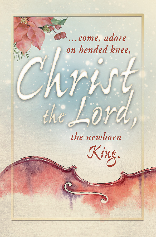 Bulletin reads: …come, adore on bended knee, Christ the Lord, the newborn King. Bulletin is 8.5" x 11" unfolded and 5.5" x 8.5" folded. Sold in packs of 50. This bulletin is part of a matching set along with letterhead, an offering envelope, and a large size bulletin.