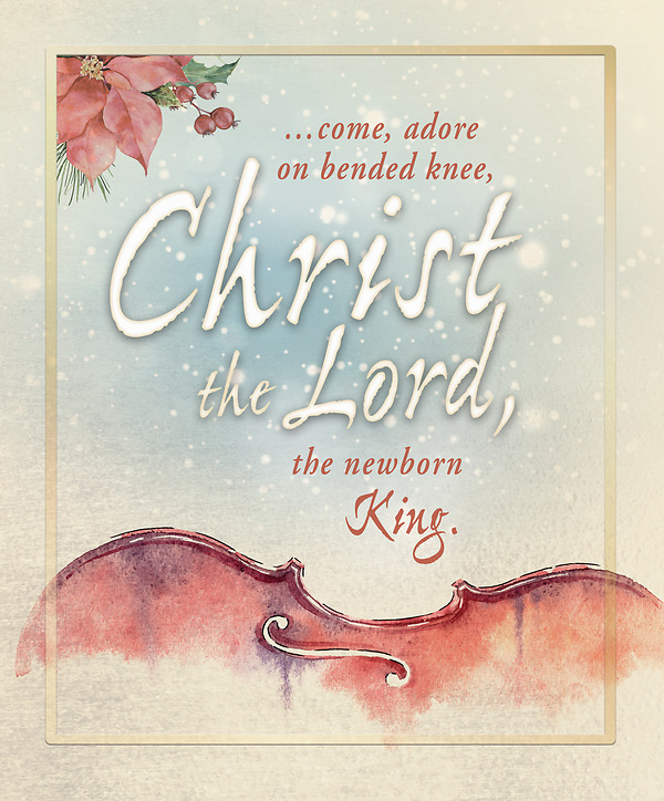 Bulletin reads: …come, adore on bended knee, Christ the Lord, the newborn King. Bulletin is 8.5" x 14" unfolded and 7" x 8.5" folded. Sold in packs of 50. This bulletin is part of a matching set along with letterhead, an offering envelope, and a regular size bulletin.