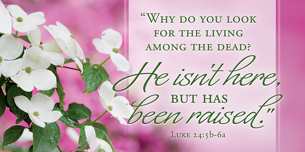 Offering envelope reads: "Why do you look for the living among the dead? He isn't here, but has been raised." Luke 24:5b-6a (CEB). Offering envelope is 6.25" x 3.125" and sold in packs of 50.