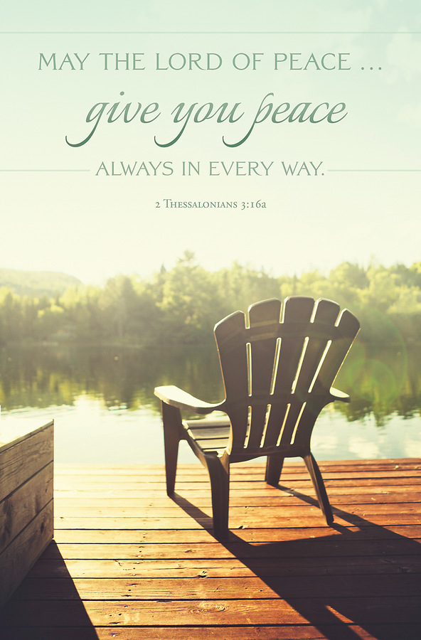 Bulletin reads: May the Lord of peace himself give you peace always in every way. 2 Thessalonians 3:16a (CEB). Bulletin is 8.5" x 11" unfolded and 5.5" x 8.5" folded. Sold in packs of 50.