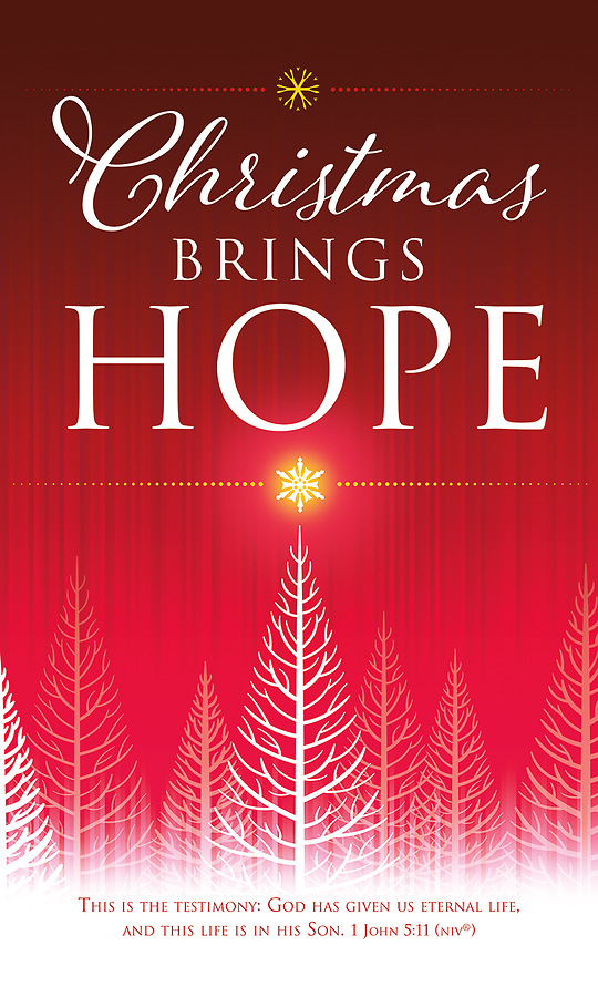 Welcome your congregation this Christmas with the uplifting Christmas Brings Hope 3 x 5 Vinyl Banner! Featuring 1 John 5:11 set on a stunning red background with silhouette trees, this contemporary banner is a great way to share the truth of the hope we have in Jesus! Whether you're placing it behind the pulpit or displaying it on a wall, this vibrant, high-quality banner will fill the hearts of everyone with an inspiring reminder of our Savior’s birth. Order early to ensure timely delivery! (See all options below)