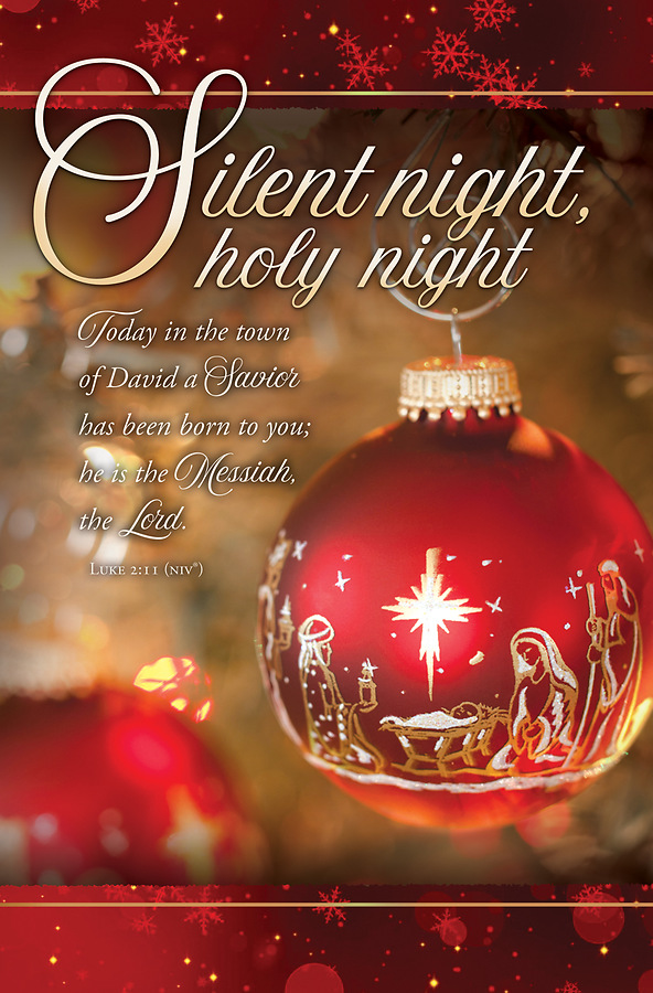 Scripture: Luke 2:10 (NIV). Bulletin is regular size (8.5" x 11") that folds to 8.5" x 5.5" for presentation.