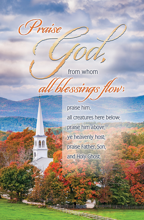Bulletin is regular size (8.5" x 11") that folds to 8.5" x 5.5" for presentation.