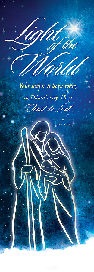 Welcome your congregation this Christmas with the beautiful Light of the World 2' x 6' Fabric Banner! Featuring Luke 2:11 set on a starry blue background with a stunning image of Mary and Joseph, this uplifting banner is a great way to share the truth of the hope we have in Jesus! Whether you're placing it behind the pulpit or displaying it on a wall, this vibrant, high-quality banner will fill the hearts of everyone with an inspiring reminder of our Savior’s birth. Order early to ensure timely delivery! (See all options below)