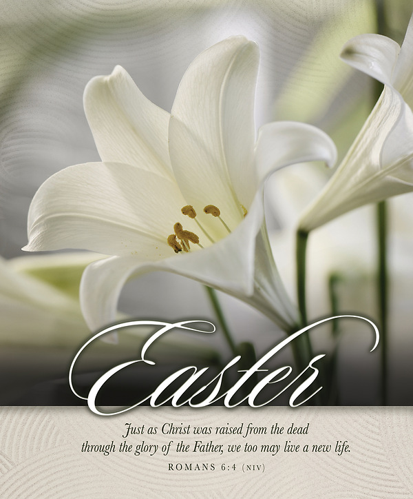 Scripture: Romans 6:4 (NIV) Bulletin is legal size (8.5" x 14") that folds to 8.5" x 7" for presentation.