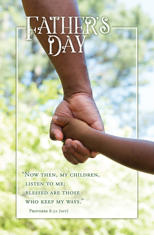Scripture: Proverbs 8:32 (NIV) Bulletin is regular size (8.5" x 11") that folds to 8.5" x 5.5" for presentation.
