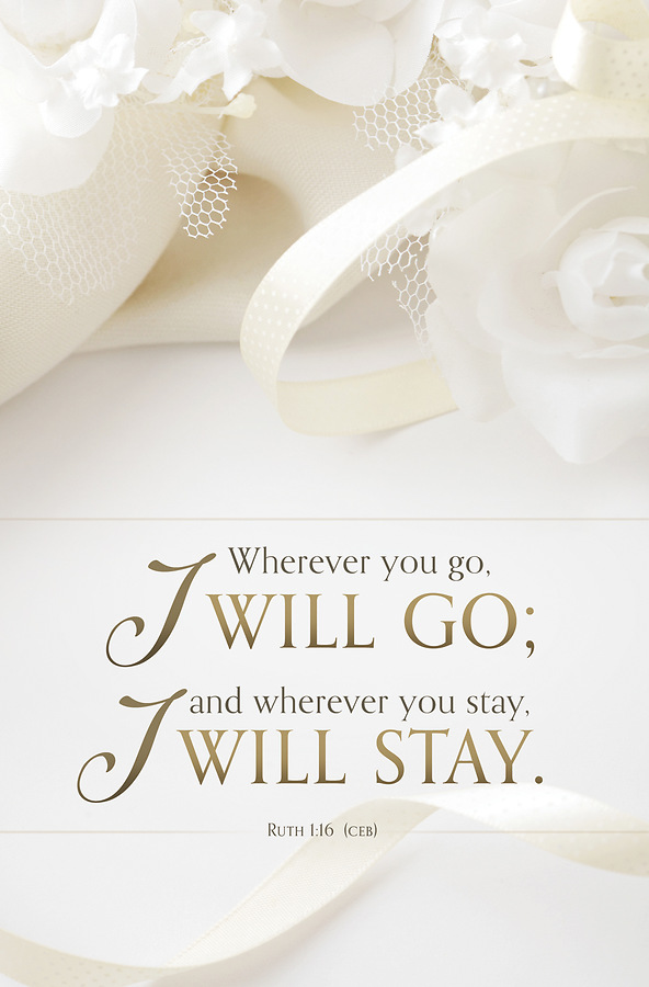 Scripture: Ruth 1:16 (KJV). Bulletin is regular size (8.5" x 11") that folds to 8.5" x 5.5" for presentation.
