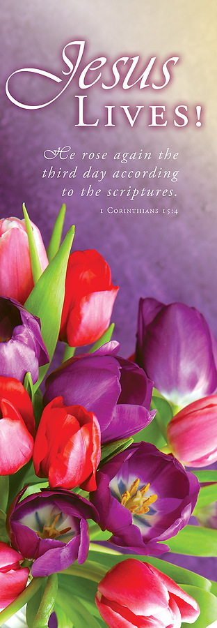 Jesus Lives Easter 2 x 6 Banner Vinyl - Scripture 1 Corinthians 15:4 (KJV)