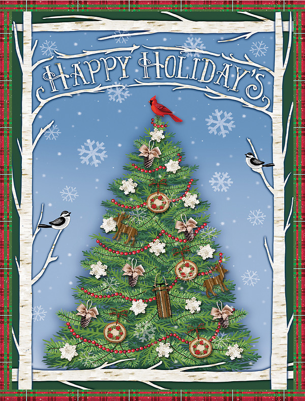 Our boxed Christmas cards measure 5.375’’ x 6.875’’. Each box contains 18 full-color cards and printed envelopes.