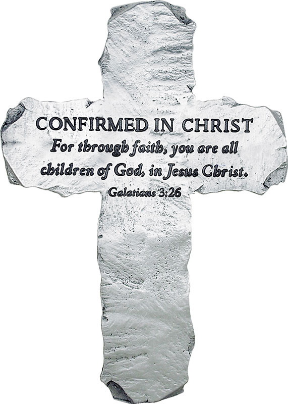 Engraved slate confirmation cross features Scripture inscription For through faith, you are all children of God, in Jesus Christ - Galatians 3:26. Approximately 5.75" tall; boxed for giving. Keepsake confirmation cross is unique gift for milestone moment with space for engraving on the back. Hand-polished, bright- finished. Gift boxed.