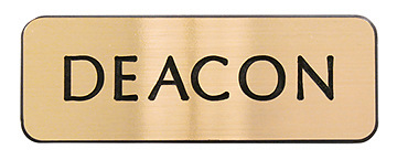 This new engraved deacon badge have rounded edges that provide an upscale look to a classic design, perfect for newer contemporary churches or for churches seeking a change from the traditional look. Has a pin back to adhere to clothing.