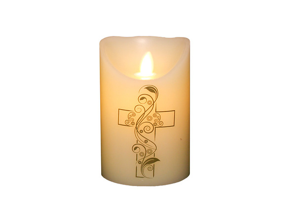 Marvelous Lights Ivory Flameless Candle W/Cross 3.25" x 5"