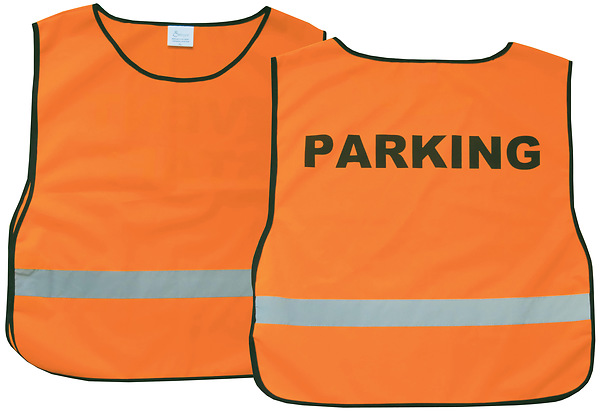 Orange safety vests for churches and events. Our safety vest are 100% polyester, in bright neon colors, with reflective stripe on front and back. Size XL fits most, with adjustable elastic side tabs with hoop and loop closures.