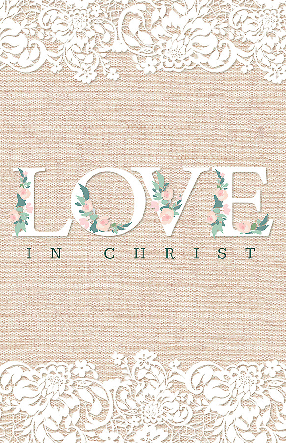 Text: Love In Christ. Scripture Reference: 2 Timothy 1:13 (NIV). Size: 8.5" x 11" folds to 5.5" x 8.5"