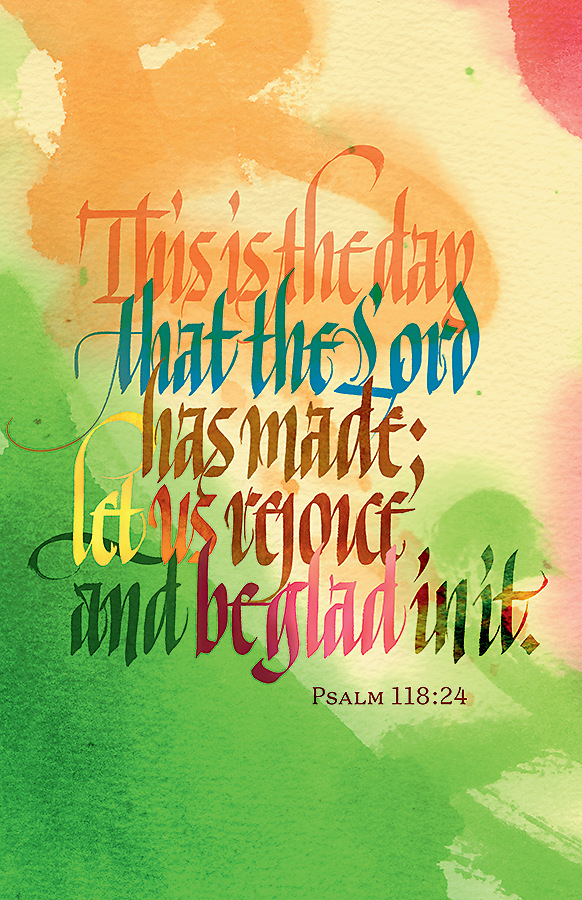 Text: Scripture: This is the day that the Lord has made; let us rejoice and be glad in it. Psalm 118:24 (ESV). Size: 8.5" x 11" folds to 5.5" x 8.5"