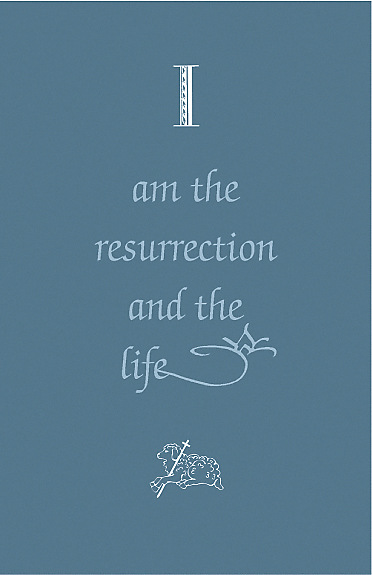 I Am the Resurrection Paschal Lamb regular size bulletin features a paschal lamb and the Scripture verse John 11:25 (KJV): I am the Resurrection and the Life. The bulletin is shown folded (8.5" x 5.5"), exactly as church members and guests will receive it. Worship bulletins arrive packaged flat 8.5" x 11" to fit into your printer or copier; shrink wrapped in packages of 100.