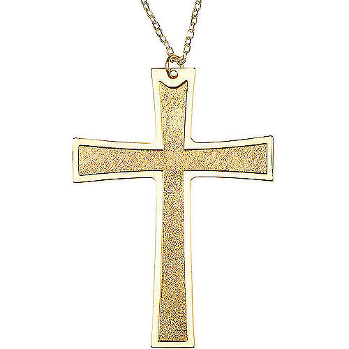 4 ¼” gold plated bronze pectoral cross forclergy or choir on 28" gold plated chain in gift box.