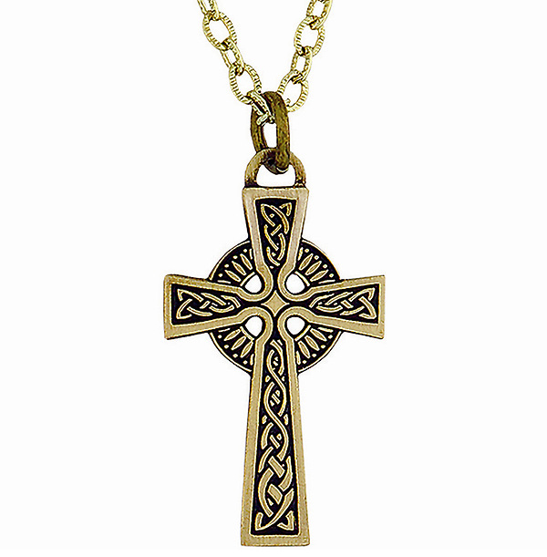 Celtic Cross Pendant measures 1" in length with antique bronze plating. An 18" chain is included.