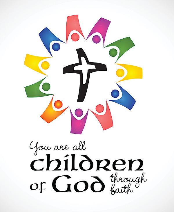 An elegant bulletin featuring a circle of children around the cross in regular size 8.5" x 11" that can be used as a General bulletin. Sold in packs of 100. Text: “You are all children of God through faith”. (Galatians 3:26) NIV