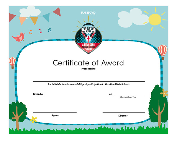 Vacation Bible School VBS 2021 A New Song The Message in Our Music Certificate of Award PK6