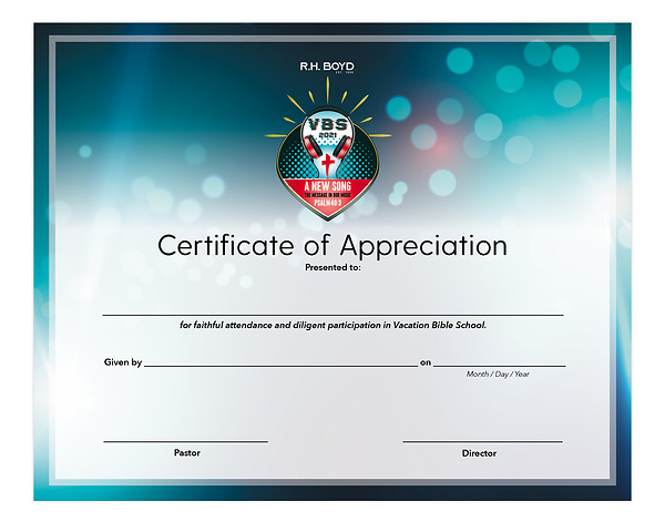 Vacation Bible School VBS 2021 A New Song The Message in Our Music Certificate of Appreciation PK6