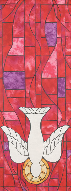 The Symbols of Faith Series Stained Glass Descending Dove Pulpit Scarf captures the transformative power of Pentecost, symbolizing the coming of the Holy Spirit’s capacity to bring life and renewal. The look of luminescent stained glass brings to life the symbols that have been used throughout church history to share the beauty of God’s love and glory. Quality crafted with exceptional detail out of poplin polyester fabric, this pulpit scarf is lined and makes the perfect addition to any church or worship space! Complete with a stunning depiction of the coming of the Holy Spirit, this modern interpretation will enhance your services for a truly inspiring experience. Celebrate Pentecost with the Symbols of Faith Series Stained Glass Descending Dove Pulpit Scarf - order today! Made in USA.