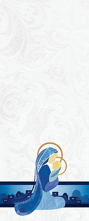 Celebrate the wonder and awe of Advent in your church with the Mother and Child Christmas Pulpit Scarf! Highlighting a stunning image of Mary holding baby Jesus in rich blue shades, all set on a beautiful, white-patterned background, this piece is also easy on your budget! Crafted from 100% polyester poplin with a matte finish, this unlined parament offers a beautiful and affordable option for your altar this Christmas. The full high-quality set comes with three pieces that enhance the celebration of Jesus' birth, an Altar Frontal, a Pulpit Scarf and a Bible Marker. Give your congregation a powerful visual reminder of the season with the Mother and Child Christmas Pulpit Scarf! Order early to ensure timely delivery! Made in USA.