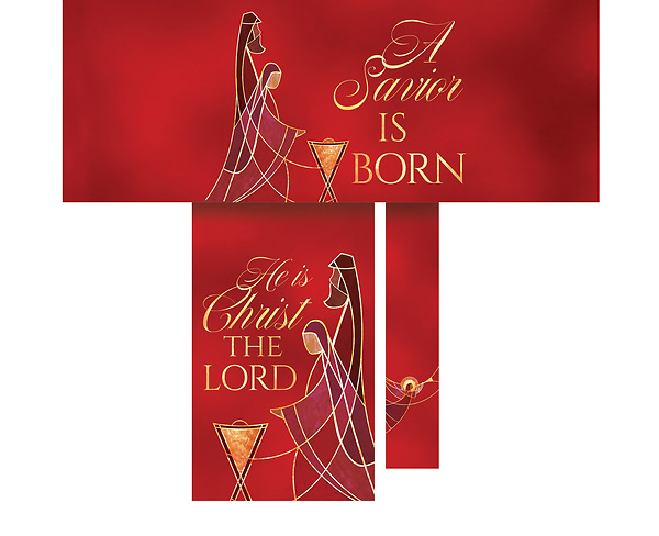 Celebrate the wonder and awe of Advent in your church with the Nativity of Jesus 3-Piece Parament Set - Red! Featuring a captivating contemporary image of the manger scene set on a white, patterned background, and highlighting the declaration of who the Savior is, this set is also easy on your budget! Crafted from 100% polyester poplin with a matte finish, this unlined parament set offers a beautiful and affordable option for your altar. The full high-quality set comes with three pieces that enhance the celebration of Jesus' birth, an Altar Frontal, a Pulpit Scarf and a Bible Marker. Give your congregation a powerful visual reminder of the season with the Nativity of Jesus 3-Piece Parament Set - Red! Order early to ensure timely delivery! Made in USA. (Also available in white, see below)