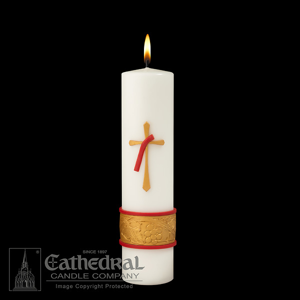 Perfect for small gatherings during formation, a commemorative gift, or as a keepsake for the home. Made of white stearine wax with raised relief wax symbols. 3" x 12" with spike hole end.