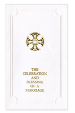 The approved service from The Book of Common Prayer (Rite II) is presented in a beautiful remembrance booklet featuring an embossed cover with the Canterbury Cross and lettering rendered in gold leaf. Includes space to record names of bridal party and special guests. The Declaration of Intention and the Marriage Certificate, printed on handsome parchment-like TRADE PAPERBACK, are stitched into the booklet. Interior pages are printed in red and black. Includes envelope. 5” x 8 1/2”