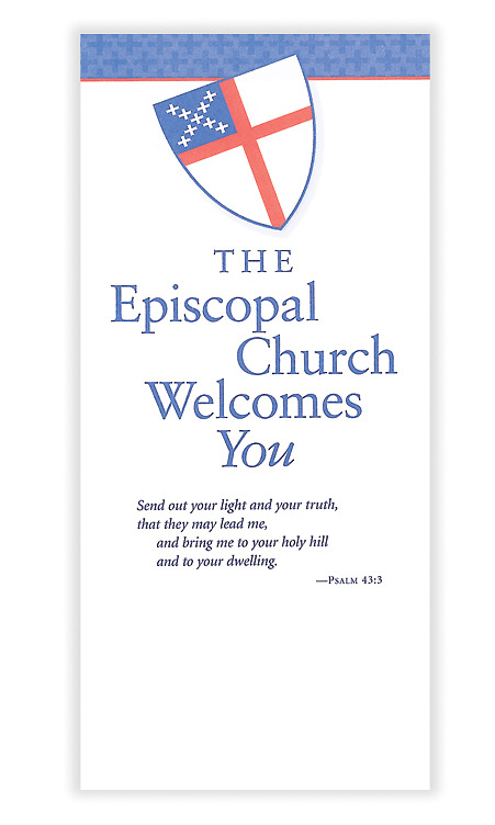 This informative brochure provides visitors with the basics of the Episcopal Church. Printed in red and blue ink on white text-weight paper. The format of the brochures allow for parish information and customization via standard office printers.