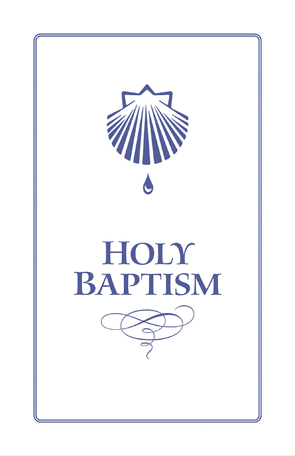 Morehouse's Holy Baptism booklet includes the approved service from The Book of Common Prayer and references the specific pages in the BCP. Holy Baptism is presented as a beautiful remembrance booklet featuring a white embossed cover with shell design, lettering, and border rendered in blue foil. Includes space to record names of the baptized, along with names of parents and godparents. Parchment presentation and certificate pages plus six white inside pages printed in dark blue ink. Includes envelope. 5" x 8 1/2"