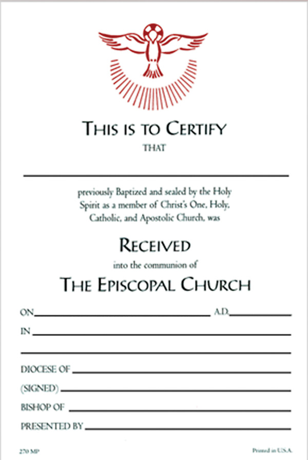 Appropriate for those being received into the Episcopal Church from another faith tradition. Includes envelope. 4 3/4” x 7”.