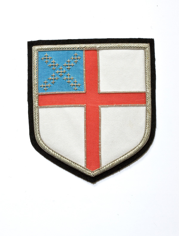 This beautifully hand embroidered shield is designed to be attached to a tippet or mounted in a wall frame as a presentation gift.