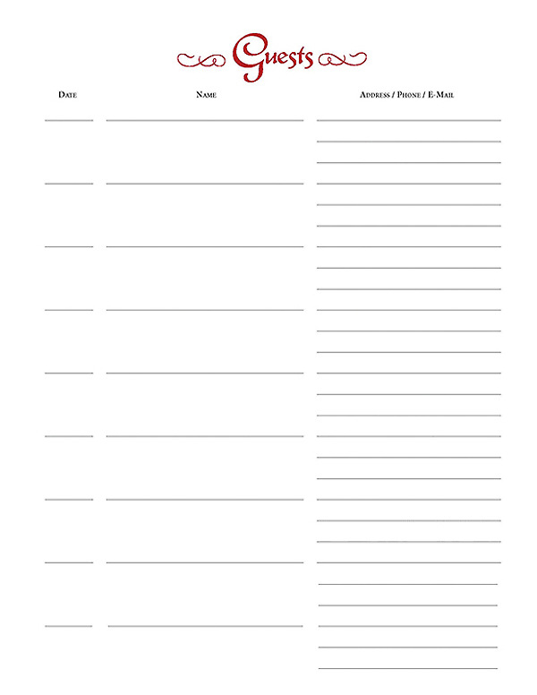 Includes twenty-five double-sided index-weight register pages plus title page. Hole-punched for the Guests of Our Church Register. Spaces for date, name, address, telephone, and e-mail address. These pages are delivered shrink wrapped. 8 1/2 x 11 pack of 25 pages. Refill pages fit binder item 846863019946.
