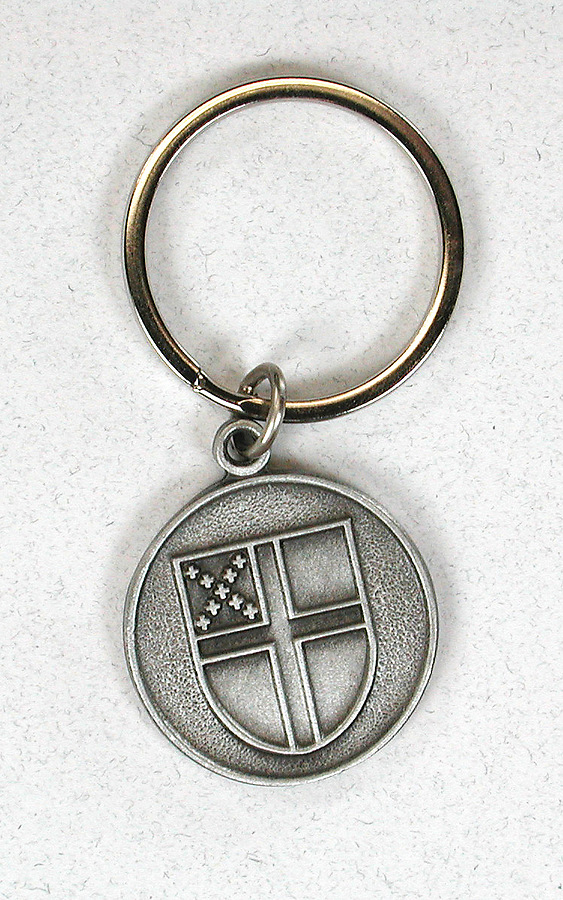This key ring features the Episcopal Shield cast in antiqued pewter. Packaged in a black velvet bag. Medallion measures 1 1/4? in diameter.