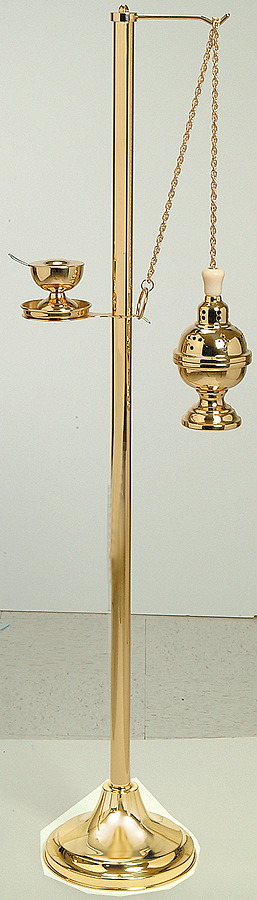 Censer Stand, Satin Brass. 50" high, 9" base. (Items shown on censer stand not included.)