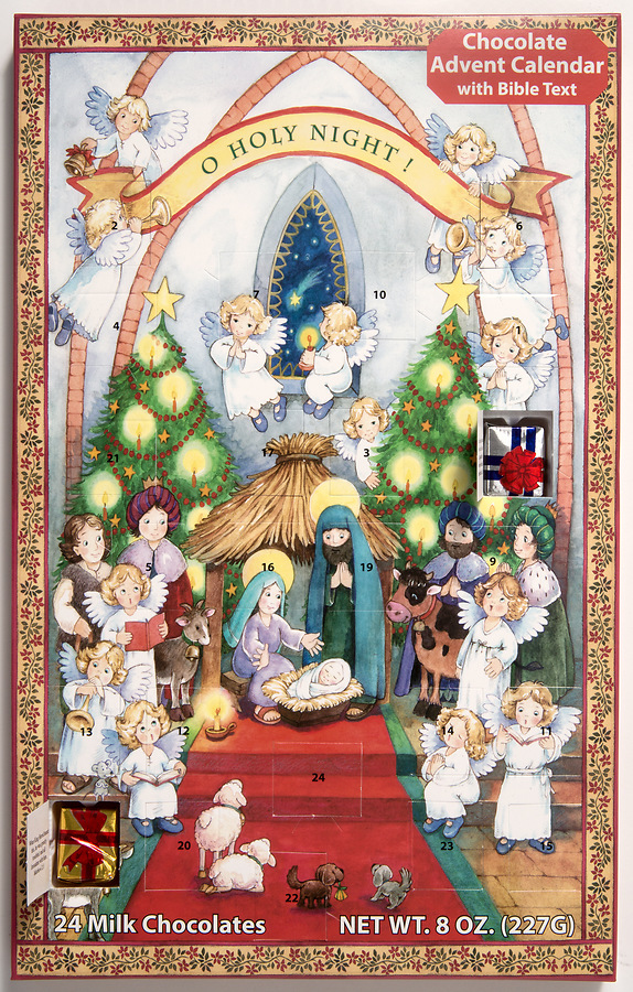 Deluxe chocolate Advent calendar! Prepare for Christmas by opening a window each day during Advent to reveal a piece of gourmet milk chocolate. Each piece is individually wrapped like a little Christmas gift. Also find bible text following the story of the Nativity. Advent calendar contains a whopping 8 ounces of chocolate. Calendar measures 8 1/2" x 13 1/4".