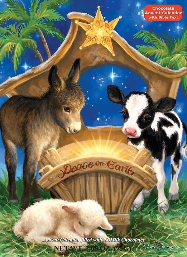 Prepare for Christmas by opening a window each day during Advent. Upon opening each window, find a wonderful piece of gourmet milk chocolate. Also find bible text that tells a part of the Nativity story. Each Advent calendar contains 2.6 ounces of chocolate and measures 10"x13 3/4"x1/2".
