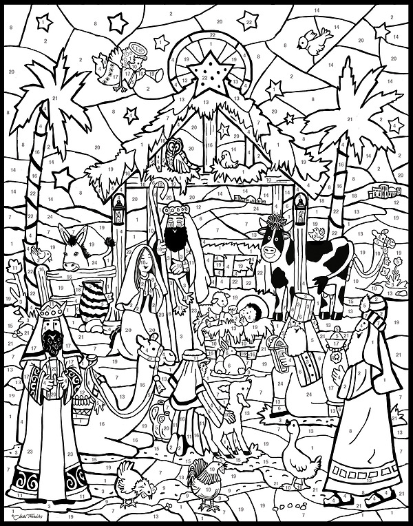 Color the corresponding number each day to complete the Starlit Manger scene. Includes 6 color pencils. Size 11" x 14"