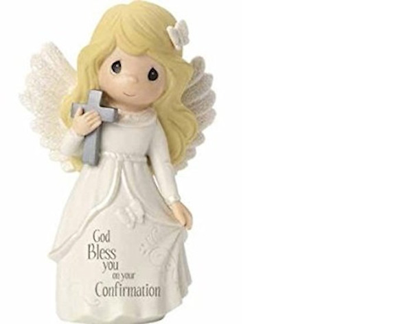 A beautiful angel presents a cross and a special blessing in honor of a special someone's confirmation day