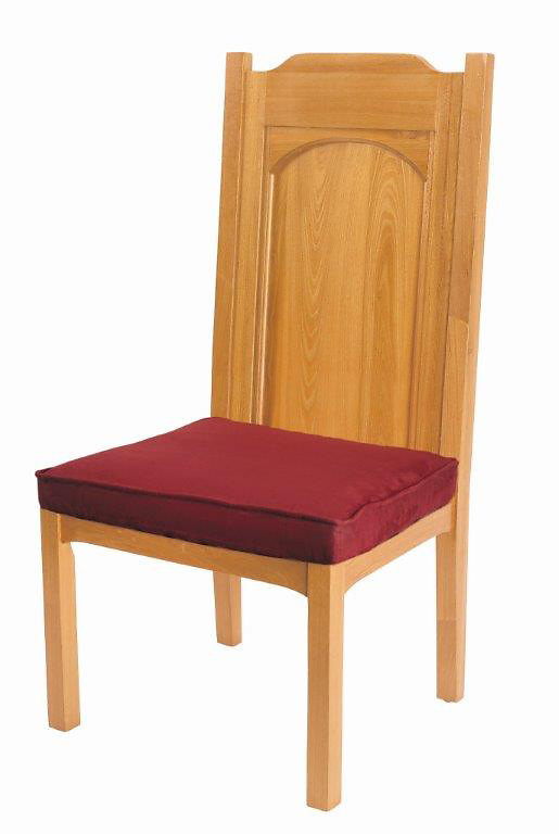 The Abbey Collection features a classic arch design which fits both modern and traditonal sanctuary décor. This side chair is handcrafted from solid maple hardwood and stained in a medium oak finish. Padded seat is made of Velour and is 3" thick. Dimensions are 24" wide x 46" high x 18" deep. Weight is 31 lbs. Some assembly required.