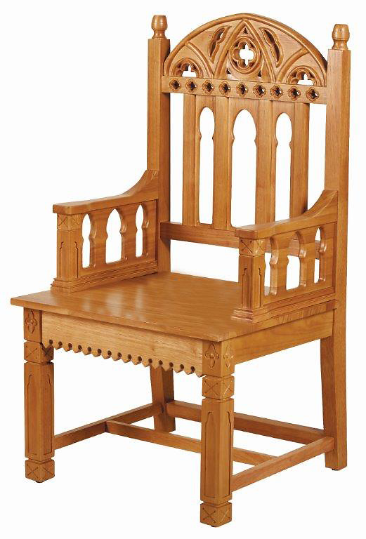 The Gothic Collection has traditional design elements incorporated throughout the line. This celebrant chair is individually constructed from solid maple hardwood and stained in a medium oak finish. Dimensions are 23" W x 48" H x 20" D. Weight is 46 lbs. Some assembly required.