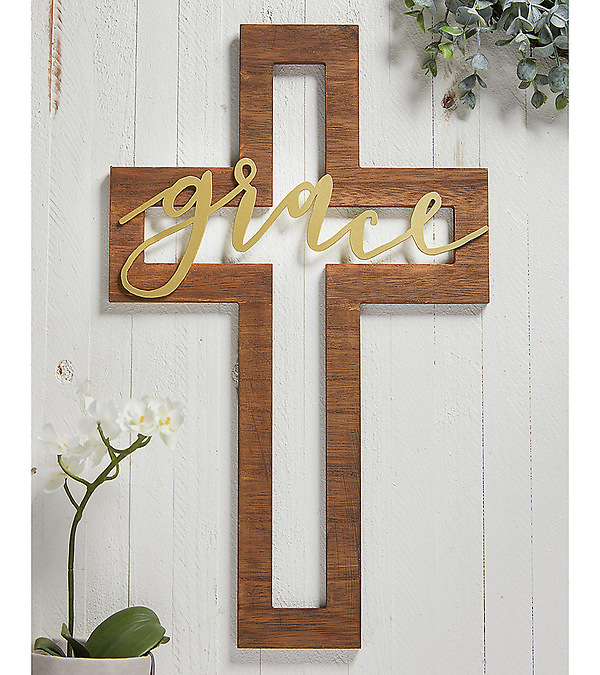 Decorate in style with this beautifully stained wooden cross with cross cut-out, and a laser cut message.
