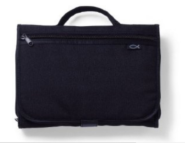 Stay organized with this tri-fold Bible cover that features multiple pockets, a sturdy spine carrying handle and interior pen and pencil holders. Made from durable nylon material, this organizer-style Bible case folds in and secures to protect your Bible and all of your other belongings.