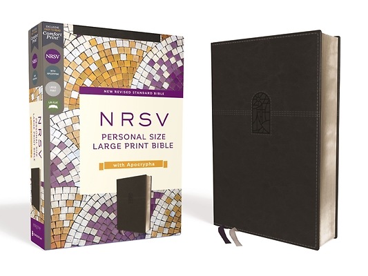 The NRSV Personal Size Large Print Bible with Apocrypha brings readability and portability together in one beautiful, sophisticated package. Featuring a generous print size and the exclusive Zondervan NRSV Comfort Print® typeface, this Bible provides a clear, smooth reading experience in a handy size.