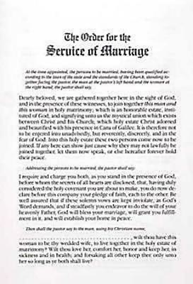 Each couple wants their wedding day in their continuing faith journey to be special and unique. This Marriage Service Bulletin Insert includes text of the marriage service (“Dearly beloved . . .”) from