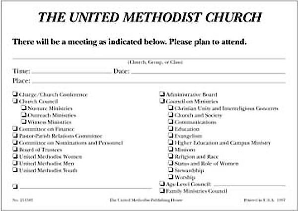 Keep team members informed of time, place, and date of upcoming meetings with this convenient United Methodist Notice of Meeting Postcard. Cards are available in packages of 100.
